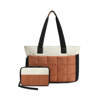 高品質カスタムキルティングラップトップトートバッグ女の子用ポータブルナイロン生地バッグジッパー付きクロージャーロゴバルクオーダー歓迎